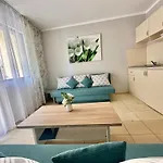 Die Unterkünfte bietet Annehmlichkeiten für Selbstversorger wie eine Küchenzeile sowie einen Essbereich im Freien für die Gäste. Viele Essensmöglichkeiten sind ebenfalls in der Nähe der Apartments verfügbar, darunter das Restaurant Zaharo Sunny Beach, das ein paar Schritte entfernt von der Unterkunft ist. Die nächste Bushaltestelle Policlinic liegt in circa 5 Gehminuten Entfernung. Ein Swimmingpool steht den Gästen zur Verfügung und sorgt für einen entspannten Aufenthalt.